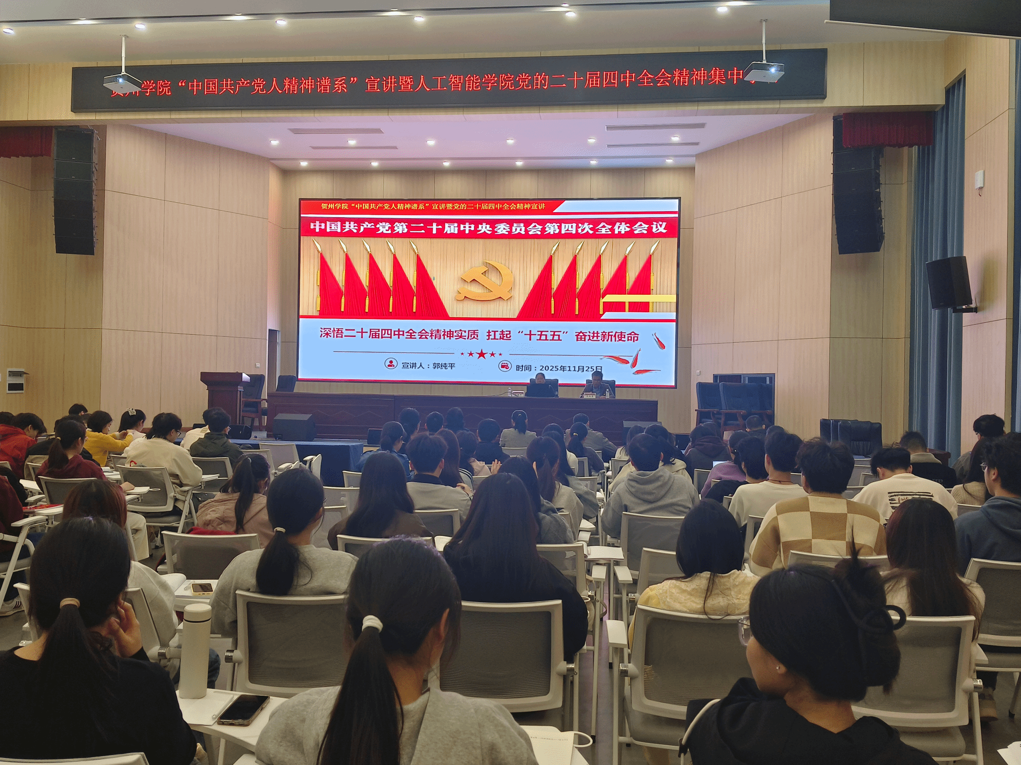 11月25日,人工智能学院党委在自强楼109学术报告厅召开党的二十届四中全会精神专题学习会,学院全体师生党员参加学习。会议特邀校党委宣传部副部长郭纯平教授作专题辅导报告。