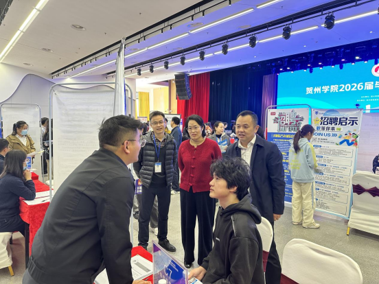 12月8日上午,贺州学院2026届毕业生秋季双选会在西校区地方民族文化研究中心顺利举办,我院党委书记李素云、院长余长庚、党委副书记邓玉赏与学院辅导员一行到场开展调研指导工作。