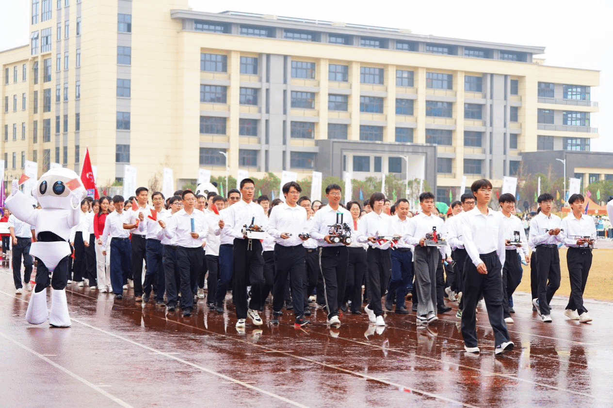 开幕式上,我院的方块队迈着整齐的步伐从主席台前进过,伴随着激昂的音乐,三角翼、机器人、机器狗为我们带来了精彩的表演。学院师生代表以“AI领航,运动闪光,超越自我,共创辉煌”为口号,立志用赛场上拼搏的汗水诠释初心使命,充分展现学院追求卓越、不断创新的精神。